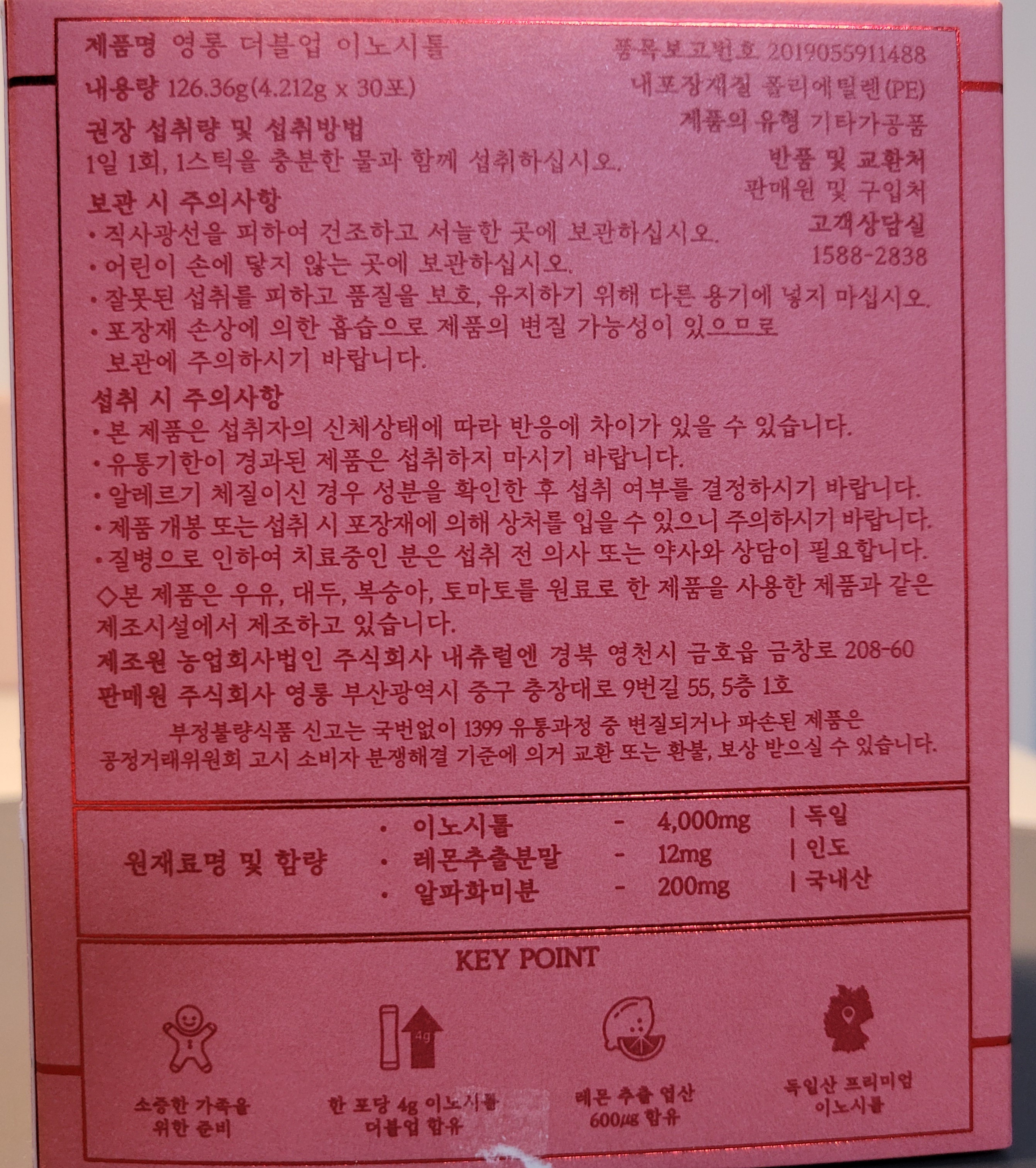 2,000g인 이노시톨 제품들의 가격이랑 비교해봤을 때 합리적인 금액이라는 생각이 들었죠.